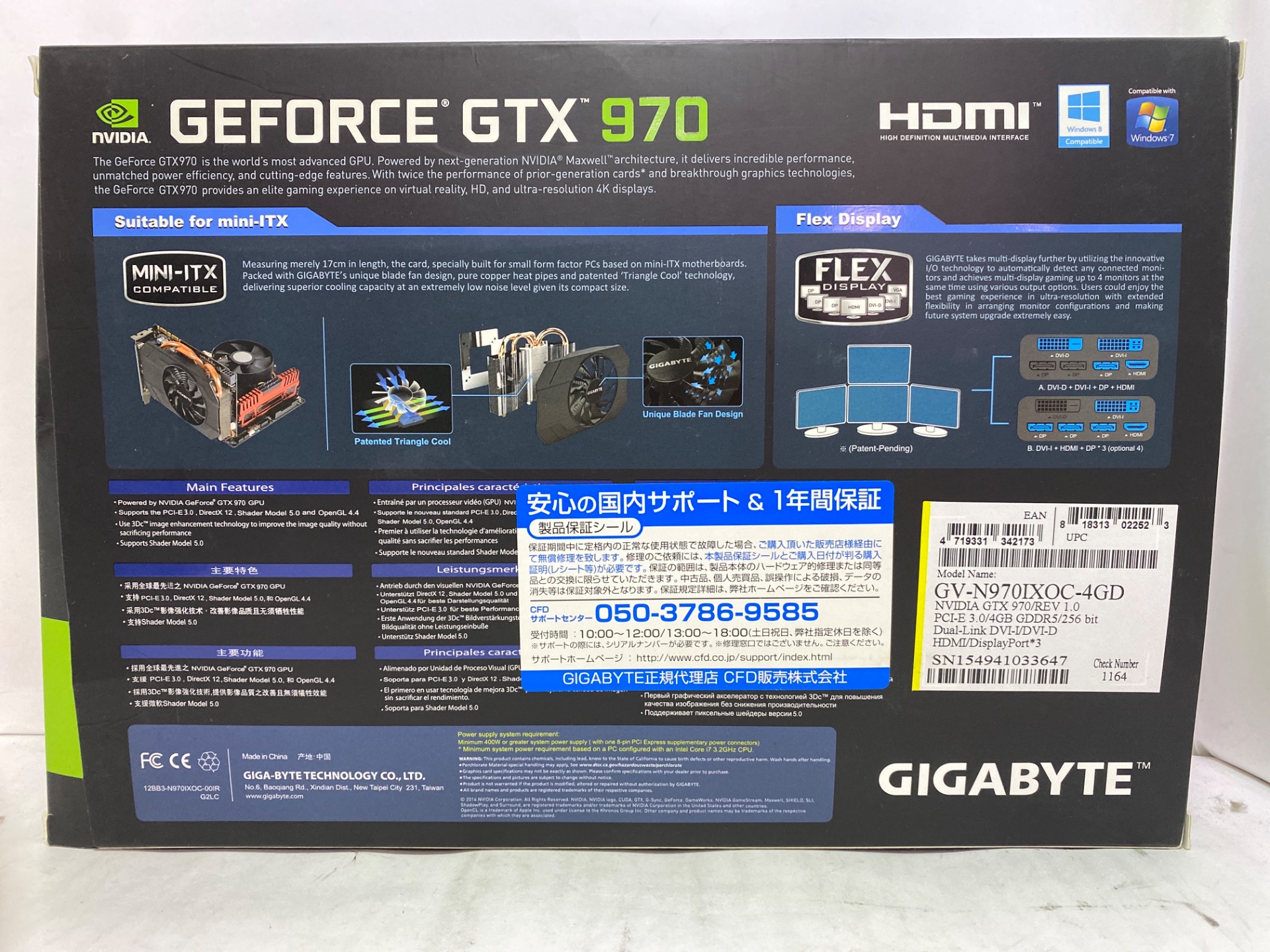[スペック] NVIDIA GeForce GTX 970/PCI Express 3.0 x16/DVIx2、HDMIx1、DisplayPortx3/GDDR5 4GB/FFベンチ6436