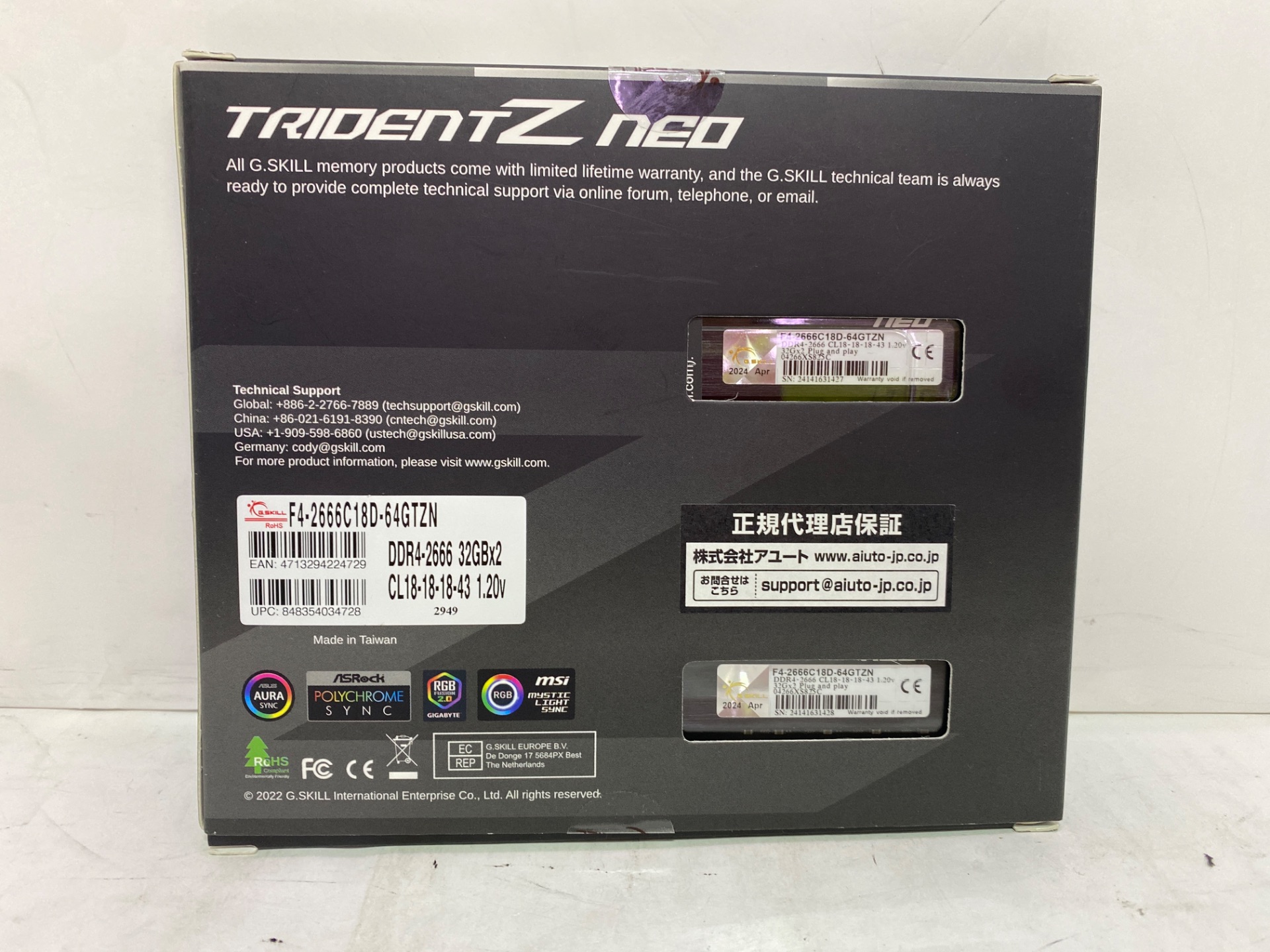 G.Skill F4-2666C18D-64GTZN [DDR4 PC4-21300 32GB 2枚組]